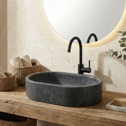Vessel Sink, Semi Polished Surface, Genuine Real Marble, Oval Shape - Gray