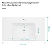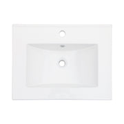 Ceramic Rectangular Bathroom Vanity Top Drop In Single Sink With Pre Drilled Faucet Hole & Built In Overflow Easy Clean Glazed Surface - White