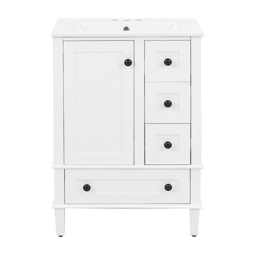 View full detailsCompact Size: 24" wide x 18.3" deep x 34" high – fits well in smaller bathrooms while maximizing usable space. Durable Ceramic Sink: Scratch-resis...