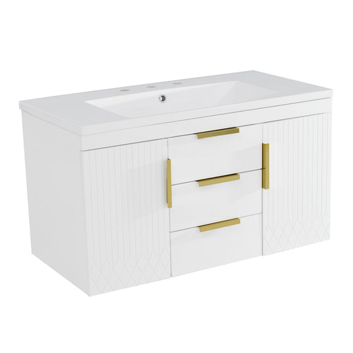 View full detailsModern Design: Clean lines and a timeless finish complement various bathroom styles, enhancing overall decor. Amber Storage: Three drawers and a h...