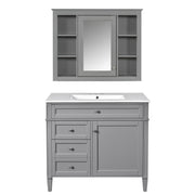 36" Bathroom Vanity With Mirror Cabinet, Storage Unit With 2 Soft Closing Doors And 4 Drawers, Drop In Sink - Gray