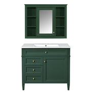 36" Bathroom Vanity With Mirror Cabinet, Sink, Cabinet, 2 Soft Closing Doors & 4 Drawers - Green