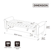 Wide Modern Upholstered Storage Bench With Rolled Armrest