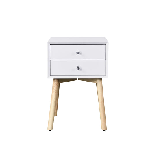 Modern Side Table With 2 Drawer, Mid-Century Storage Cabinet For Bedroom - White