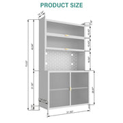 Tall Kitchen Pantry Cabinet With Flip Doors And Pegboard, Anti Tip Steel Storage Hutch