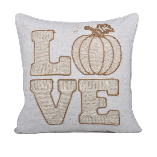 View full detailsTextured LOVE Lettering: Detailed embroidery highlights the word LOVE with a pumpkin accent for a festive fall look Neutral Beige Design: Soft lin...