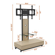 Mobile TV Cart With Push Pull Drawer For TVs Wood & Glass Stand With Lockable Wheels - Natural