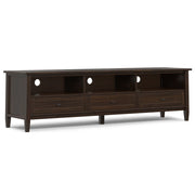 - Extra wide TV Stand is perfect for TVs up to 80 inches, includes cord management cut-outs for easy installation of TV and media components.