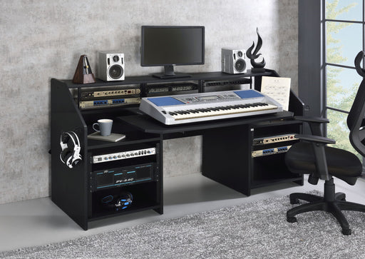 View full detailsVersatile Music Desk: The Willow Music Desk features a rectangular design with built-in speaker shelves, a keyboard tray, and an earphone rack, m...