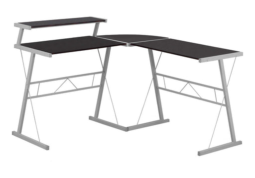 View full detailsContemporary Design: This L-shaped computer desk features a sleek, modern design with a two-tone laminate wood-look finish and a sturdy metal bas...