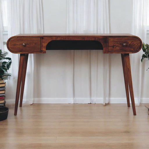 View full detailsCurved Chestnut Writing Desk - Introducing our stylish Writing Desk, crafted from solid mango wood. It's sustainably sourced and comes in a beauti...