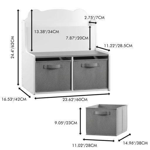Toy Box Bench With Collapsible Drawers, Storage Cabinet Organizer - White