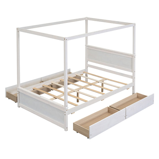 View full detailsModern Design: This wooden canopy bed with a brushed-effect finish features a sleek exterior profile, built-in headboard and footboard, and clean l...