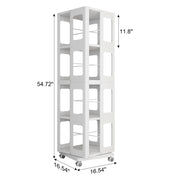 4 Tier All Steel Rotating Bookshelf With 360° Wheels, Large Size Sturdy & Spacious Book Rack, New Style Bookshelf - White