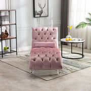 Velvet Chaise Lounge Indoor, Button Tufted Upholstered Chaise Lounge Chair With Pillow - Pink