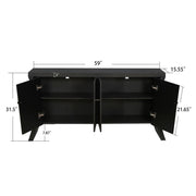 Refined 4 Door Credenza With Arc Legs & Bronze Clasps, Advanced Storage Design - Black
