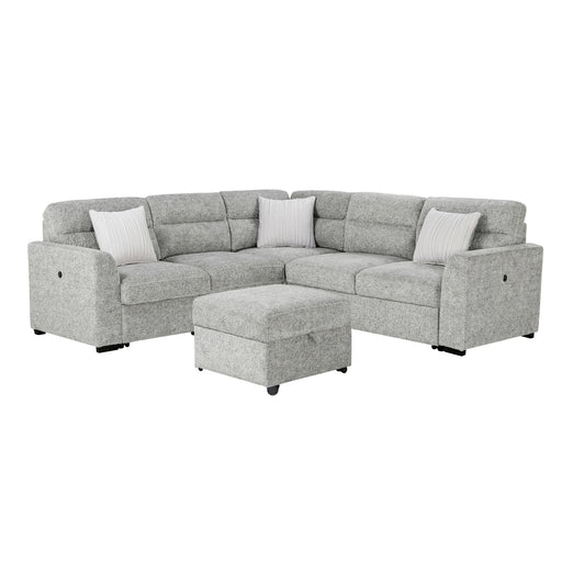 Emiliano - Sectional Sofa With 3 Pillows And Storage Ottoman - Nickel