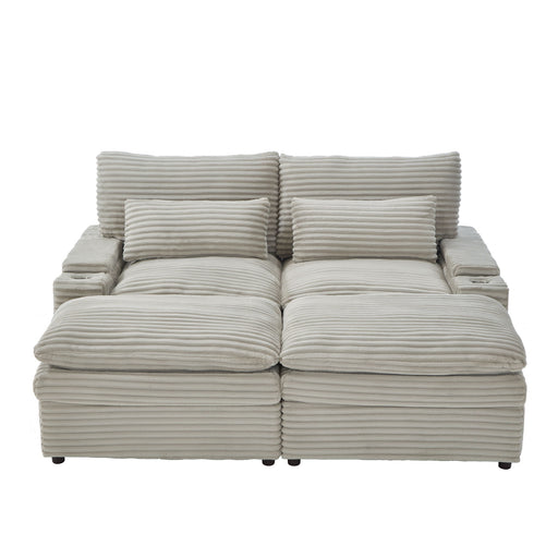 Convertible Loveseat Sofa With Storage, USB Ports, Cup Holders