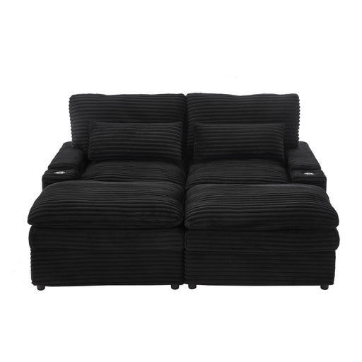Convertible Sectional Sofa Bed Set With Armrest Storage, Cup Holder, USB - Black