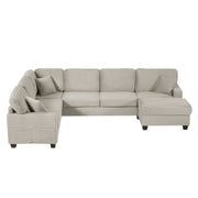 U-Shaped Sectional Sofa With Movable Ottoman With Side Storage Pockets - Taupe