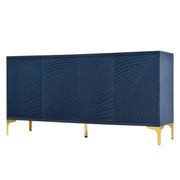 Modern 4 Door Sideboard With Creative Carved Surface And Adjustable Shelves - Light Blue