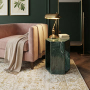 Hexagon Side Table Geometric Stone With Veining Polished Pedestal Nightstand For Living Room - Green