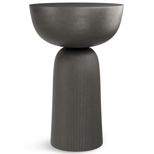 Handcrafted with care using premium Cast Aluminum. Hand-finished in Graphite with a subtle texture on the tabletop and a lined textured pattern on...
