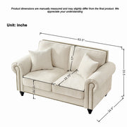 3 And 2 Seater Sofa With Rolled Arms And Nailhead Trim Upholstered Couch With Legs - Beige