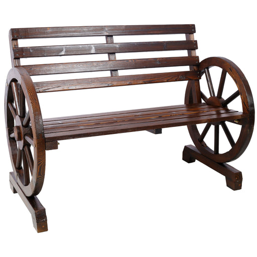 View full detailsRustic Charm and Style: Features a burnt-like wood finish for a unique rustic appeal. Unique Wheel Bench Legs: Distinctive wagon wheel design adds...
