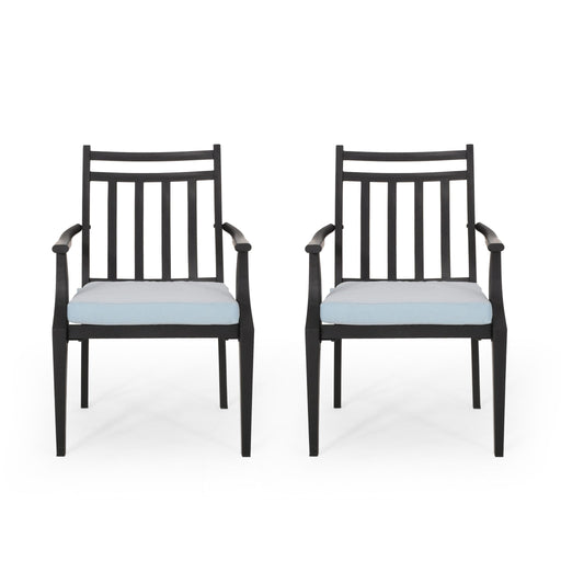 Set of Two: Includes two outdoor accent chairs, perfect for enhancing your outdoor dining or lounging space. Metal Blend: Expertly combining cushi...