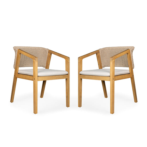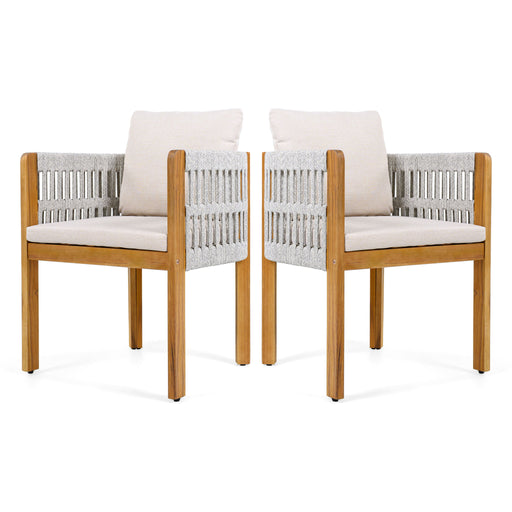Preston - Outdoor Dining Chair With Cushion (Set of 2) - Teak / Beige