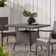 Outdoor Rattan Square Dining Table With 4 Legs - Gray