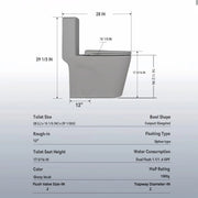 1 Piece Tornado Flush Toilet With Soft Close Seat And Dual Flush Siphonic S Trap - Light Gray