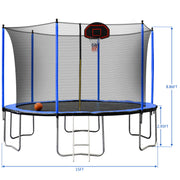 15Ft Trampoline With Basketball Hoop Inflator And Ladder (Inner Safety Enclosure)