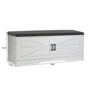2 Tier Shoe Bench With Padded Seat, 2 Barn Doors And Adjustable Shelves, For Entryway And Living Room - White