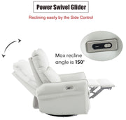 29.92" 270 Power Swivel Rocker Recliner Chair, Electric Glider Reclining Sofa With USB Ports, Power Swivel Glider, Rocking Chair Nursery Recliners For Living Room Bedroom - Light Gray