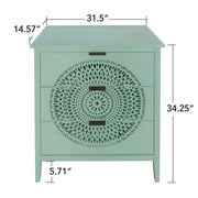 3 Drawer Storage Cabinet With Hollow Carved Design And Metal Handles, Chest For Entryway, Living Room Or Bedroom - Light Green