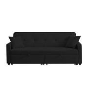3 In 1 Convertible Sleeper Sofa Bed, Modern Fabric Loveseat Futon Sofa Couch Pullout Bed, Small Love Seat Lounge Sofa Reclining Backrest, Pillows, Pockets, Home Furniture For Living Room - Black