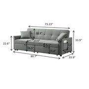 3 In 1 Convertible Sleeper Sofa Bed, Reclining Backrest, Pillows, Pockets