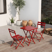 3 Piece Patio Bistro Set Of Foldable Square Table And Chairs - Red