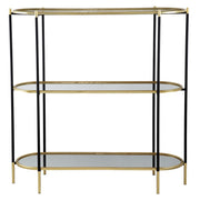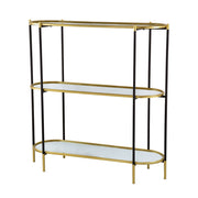 3 Tier Metal Console Table, Mirrored Shelf - Golden Black