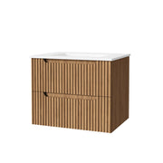 - This vanity blends mid-century and contemporary styles. Its two large, textured drawers offer a classic look, while the wall-mounted design saves floor space for an open, spacious feel.