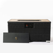 32" Propane Gas Fire Pit Table With Propane Tank Cover, 50000 Btu Rectangular Steel Fire Pit With Beautiful Wicker Base