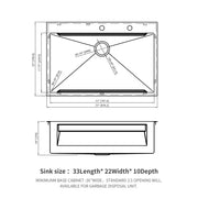33" Drop In Kitchen Sink Single Bowl 16 Gauge Stainless Steel Ledge Workstation - Black