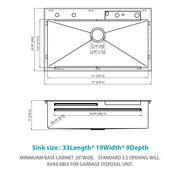 33" Stainless Steel Single Bowl Kitchen Sink With Waterfall Flow