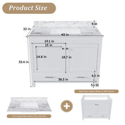 43" Bathroom Vanity, Multi Functional Cabinet - White