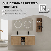 48" Wall Mounted Bathroom Vanity With Double Resin Sink And Storage Rack Soft Close Doors Plywood Construction - Imitative Oak