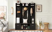 5 In 1 Entryway Bench With Coat Rack, 7 Sturdy Hooks, 2 Spacious Drawers And Adjustable Shelves, Wide Hall Tree With Metal Handles For Hallway - Black