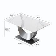 63" Modern Artificial Stone Crescent-Shaped Metal Legs, Can Accommodate 6-8 People - White / Black