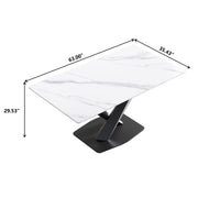 63" Modern Artificial Stone Straight Edge Metal X-Leg Dining Table, 6 People - White / Black
